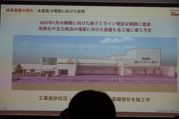 この旺盛な需要に応えるべく、朝日工場においてグミラインを増設すると昨年2月に発表。現在の2ラインから3ライン体制へ拡充する予定で、生産能力を約5割増強することになります。2027年7月の稼働開始に向け準備は順調とのことで、効率化および主力商品の安定供給体制も強化していく方向です。