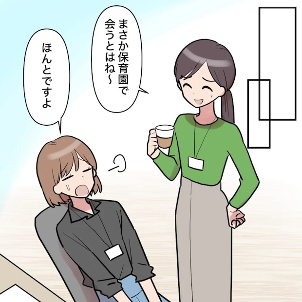 次の日。出社した私は、藤澤さんにこれまでの出来事を話しました。すると藤澤さんは「まさか保育園で会うとはね」と苦笑い。私は困ったように「ほんとですよ」と肩をすくめて答えました。
