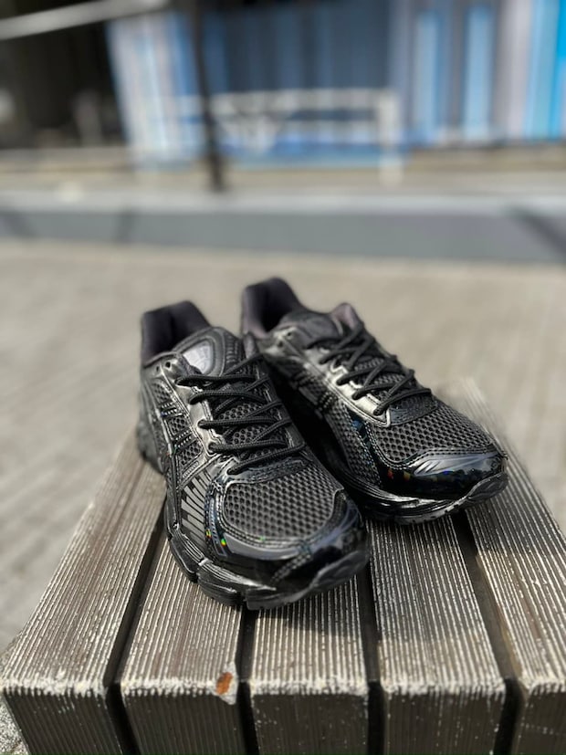 「こちらはatmos別注で、日本の国宝にもなっているラデンアートをテーマにしています。パッと見は黒ですが、動きを加えたりすると部分的にキラキラと光るんですよ。大人だからシックなスニーカーがいいかもだけど、ちょっと遊びたいという人にオススメしたいモデルです。アシックスなのではき心地は最高ですし、長時間はいても疲れないのも大人は嬉しいですよね! 」(工藤さん)