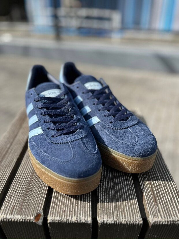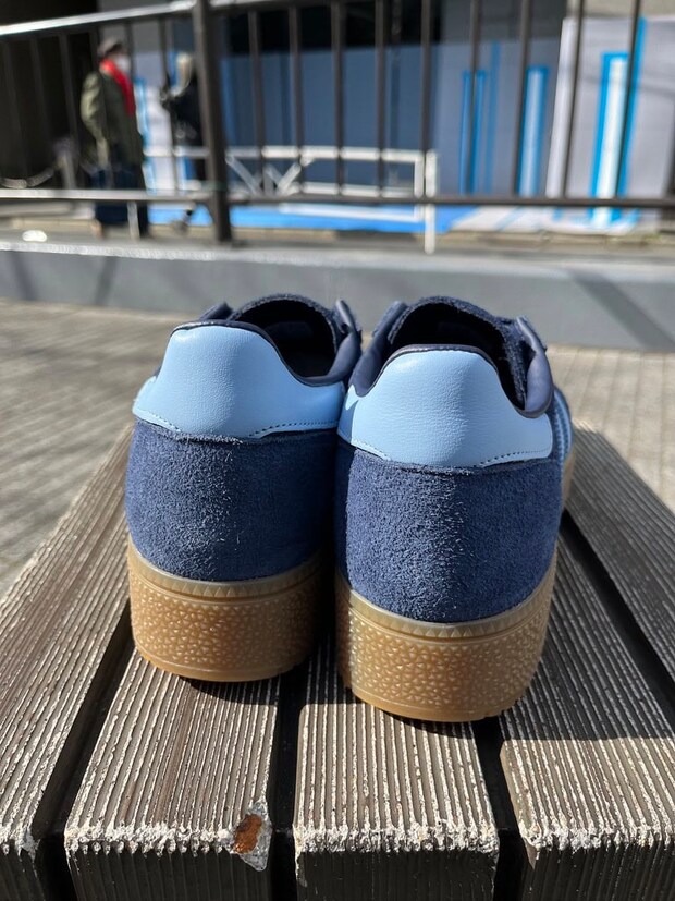 「1979年の発売以来、ずーーーっと売れているハンドボール スペツィアルからも待望の厚底が出たんです! クラシックなガムソールで厚底っていうのも新鮮ですよね。しかも厚底すぎないので大人も取り入れやすいですし、よりスタイリングの幅も広がると思います。ハンドボール スペツィアルはカラーバリエーションも豊富ですが、個人的には今回紹介しているネイビーとブラウンを大人にオススメしたいですね」(工藤さん)