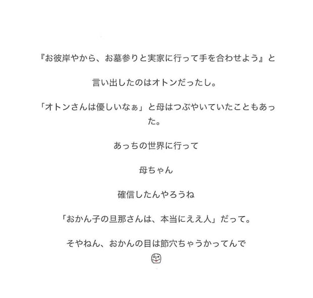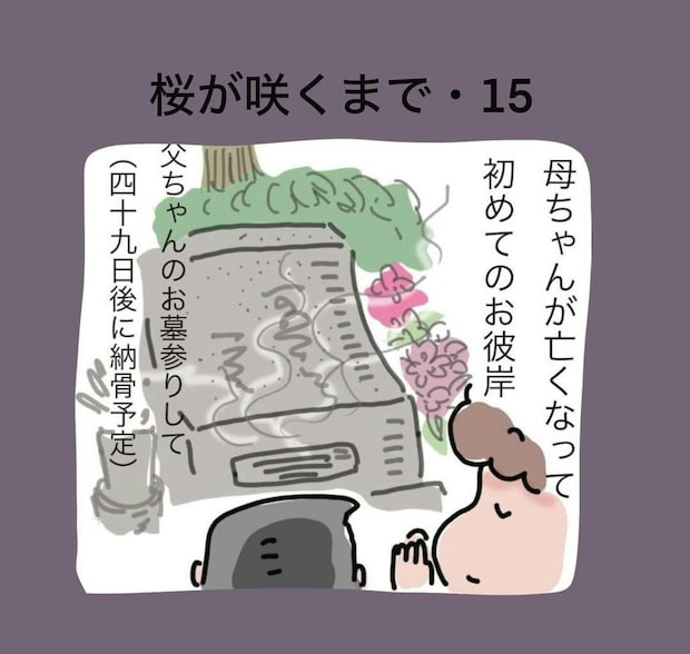 おかんさんの家族は、母親が亡くなってから迎える初めてのお彼岸の日に、お墓参りとお仏壇に手を合わせに行きました。