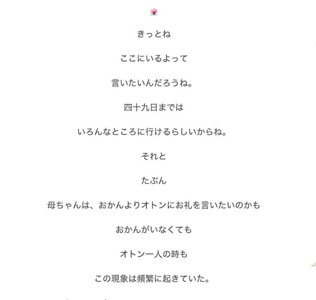 家族は、リビングで起こる怪奇現象を、おかんさんの母親からのメッセージだと受け止めました。
