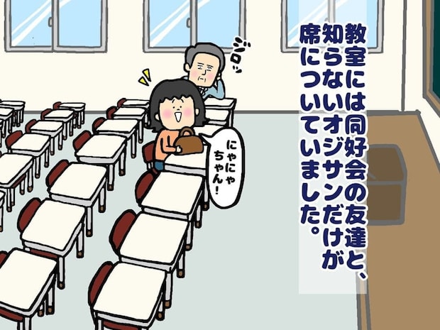 教室に着くと、中には同好会の友人と、見知らぬ年配の先生がひとり座っていました。