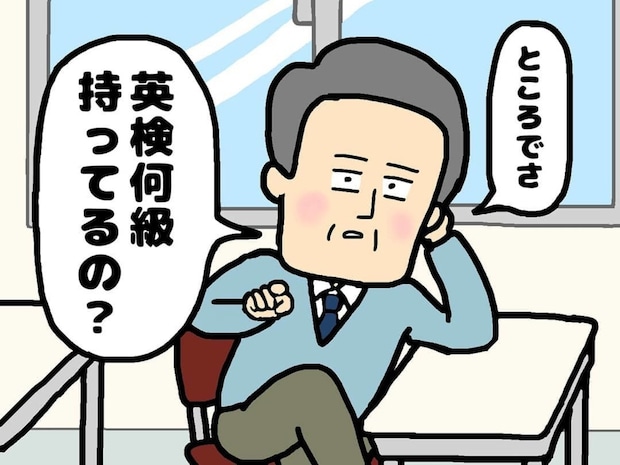 教室に入るなり、先生は主人公に「英検何級持ってるの?」と問いかけます。