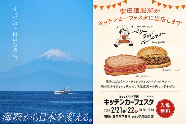 東京都大田区を拠点とする安田造船所が、2月21日(土)・22日(日)に静岡県下田市のまどが浜海遊公園で開催される「みなとオアシス下田 キッチンカーフェスタ」に参加し、キッチンカー「ペリーグッドバーベキュー」を出店する。