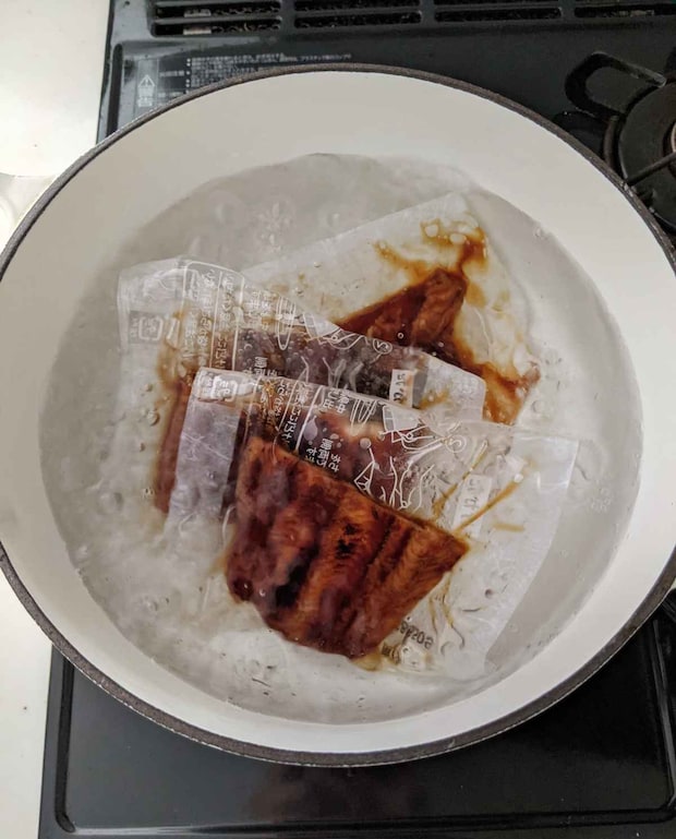 パッケージを開けてみると香ばしく焼き上げた真空パックの蒲焼き3点と刻みごぼう入りの“めしの具”、うなぎのたれと山椒が入っていました。備え付けの調理方法の手順に沿って準備するだけなのでとっても簡単。そのままご飯にのせるだけでも十分ごちそうですが、今回はアレンジを楽しんでみました。