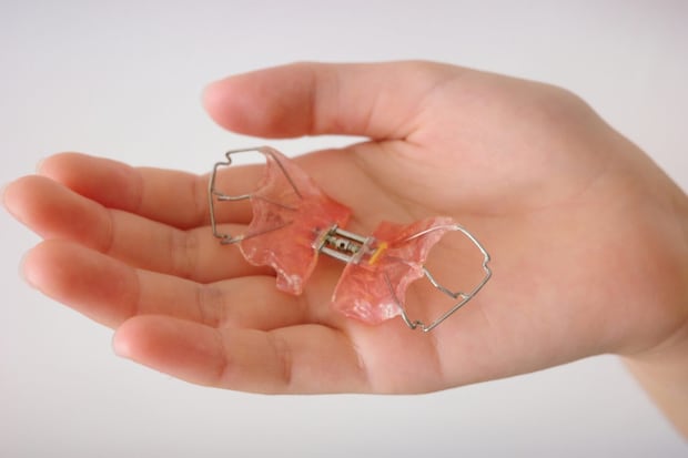 お子さんが自分でつけられそうにない場合や、確実に顎を広げたい場合は、固定式の拡大装置(写真[下])を選ぶこともあります。