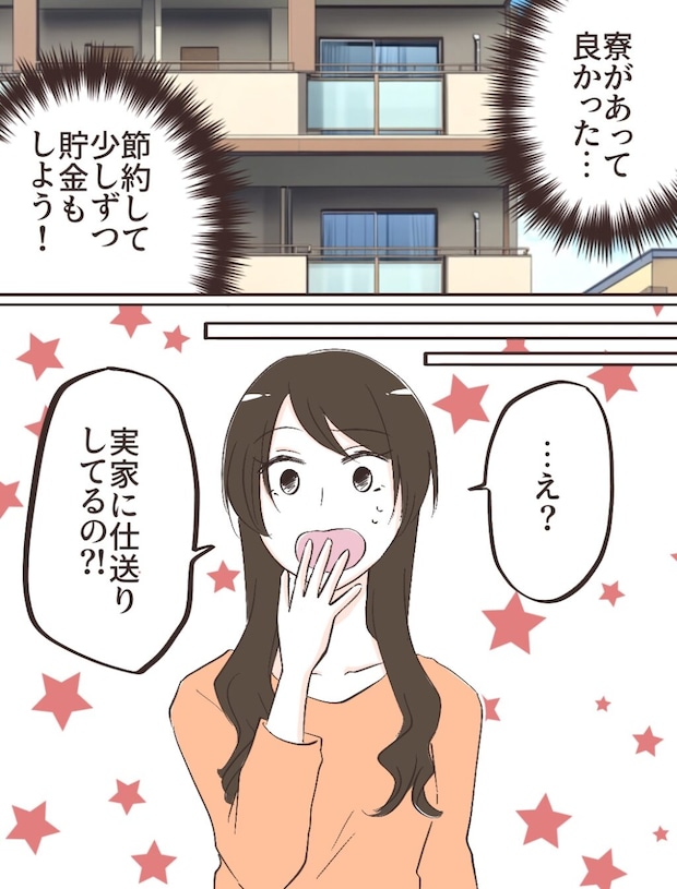 でも、会社の寮に入れたおかげで家賃がかからなくて済むのが幸いでした。節約して、これからは少しずつ貯金もしよう。それから数日後、何気ない会話の流れで実家に仕送りをしていることを話すと、同僚は一瞬言葉を失い、「・・・え?実家に仕送りしてるの!?」と、ポカンと口を開けて驚きました。