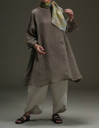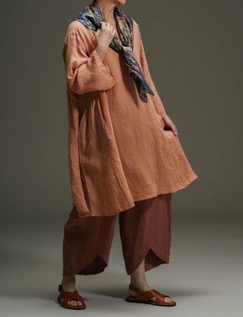 リネンボイルパレットチュニック(さんごいろ)、リネンパレットコクーンパンツ(はいあか)