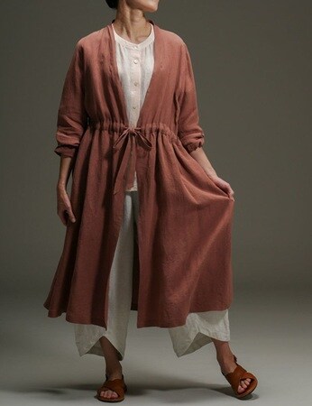 リネンパレットローブワンピース(はいあか)、リネンボイルパレットギャザーブラウス(さくらいろ)
