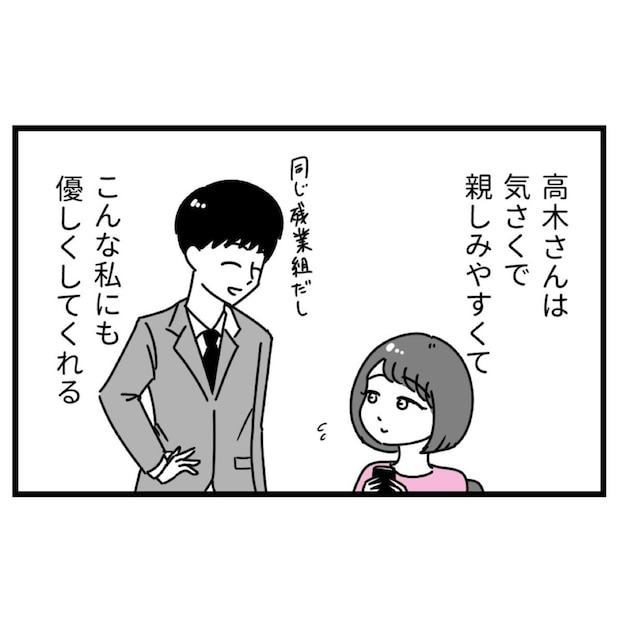 優菜は幼少期にぶつけられた容姿に対する心ない言葉が、大人になってもしこりとなって残っていました。若く美しい中途社員と扱いに差があるのは、容姿のせいなのではないかと、ネガティブな考えがよぎります。それでも気持ちを切り替えて残業をする優菜に、優しく声をかけてきたのは同僚の高木光一。親切で気さくな光一に、優菜は好意を抱いているようです。