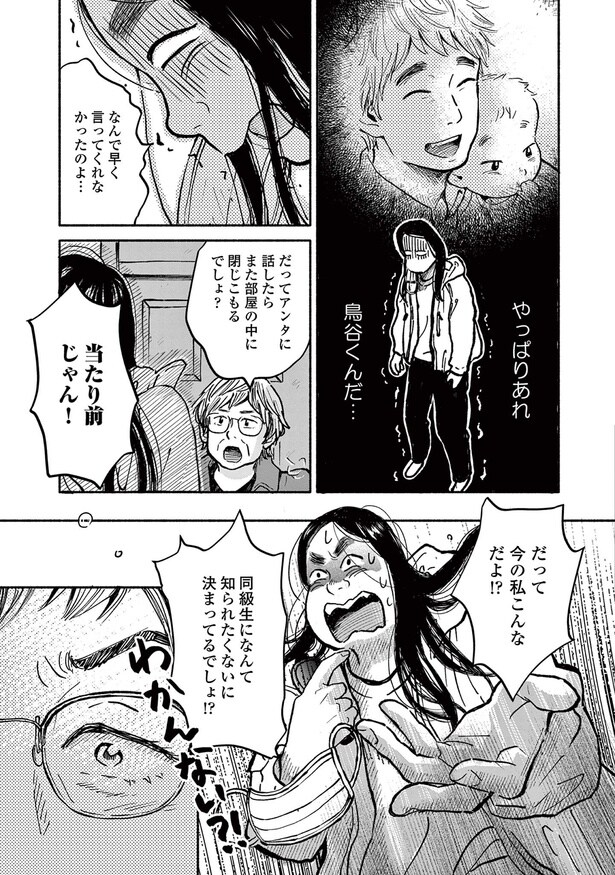 前回、実家の向かいの家に小学生の頃好きだった鳥谷くんが引っ越してきた。焦ったウズメは「今の自分の状況を元同級生に知られたくない!」と母親に当たる。引きこもりをやめさせたい母親はある行動に出ることに…。