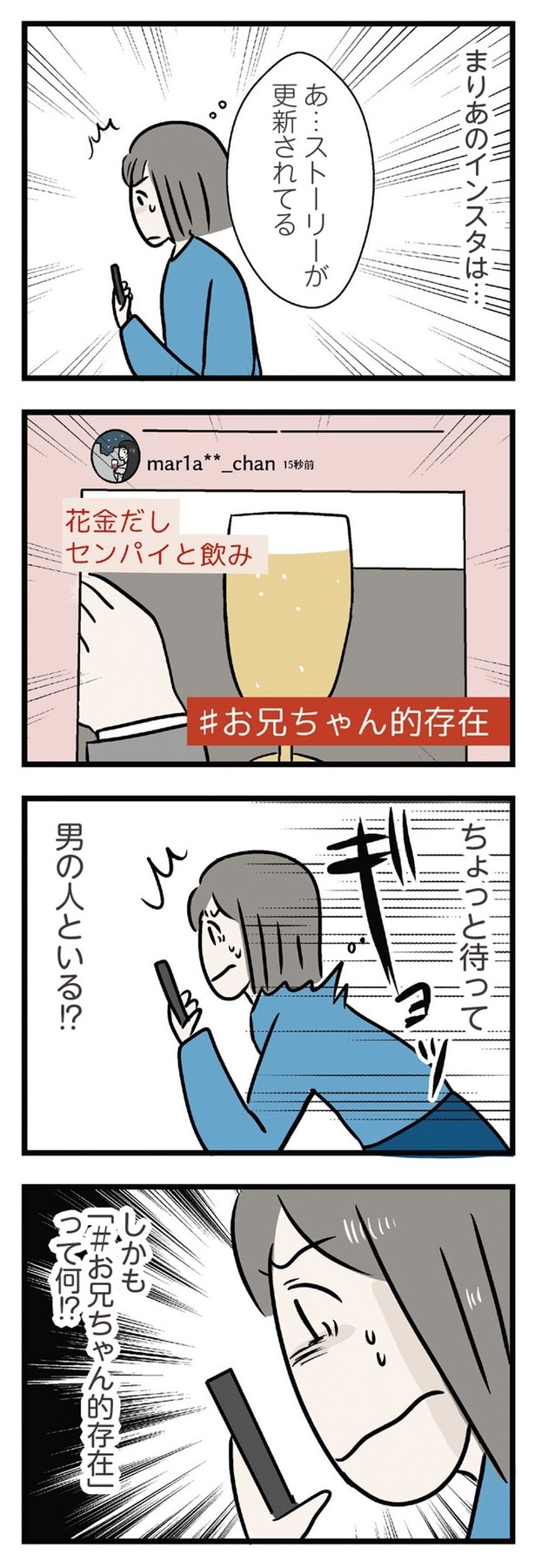 前回、危なっかしいまりあを家まで送ることになったカズマ。そんなカズマから返事がこず既読スルーされていることにエリは不安になった。気になってまりあのSNSをチェックしてみると…!?