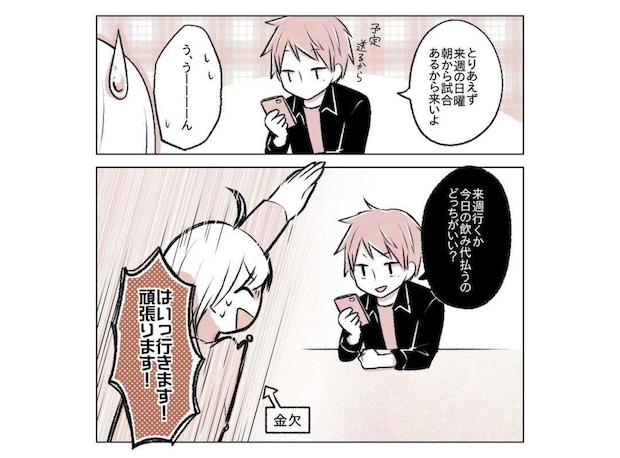 りんさんが、草野球のマネージャーをするか悩んでいると、ゆーさんはとりあえず次の日曜日の試合を見に来るよう予定を送ってきました。りんさんは少し強引に草野球に誘われたものの、話を聞いて興味は湧いているようです。そして、この日をきっかけにりんさんとゆーさんは会社外でも接点ができたのでした。