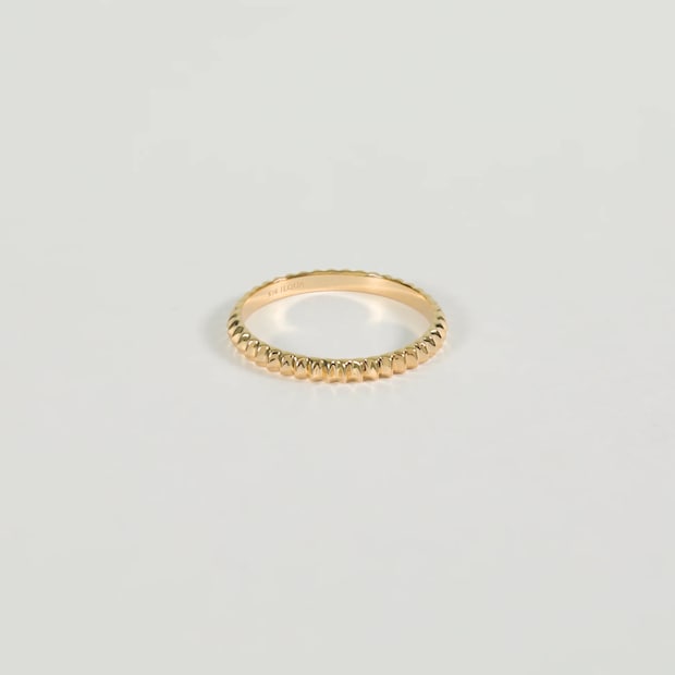 思わず指先で触れたくなりそうな、でこぼことした波打つようなテクスチャが印象的なリング。シンプルでありながら立体的なデザインが、手元に個性を忍ばせてくれます。