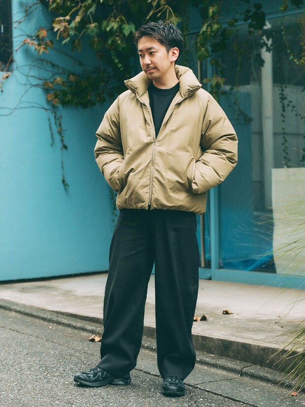 ママとお揃いのブランドで夫婦リンク。タウンユースにもなじむ、スポーティなデザインが冬の動けるコーデにぴったり♪