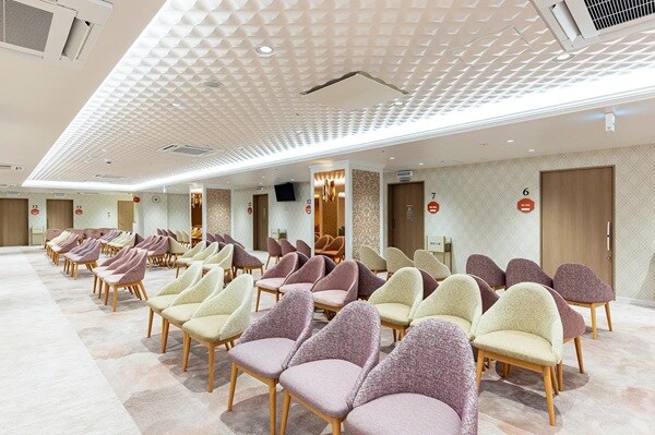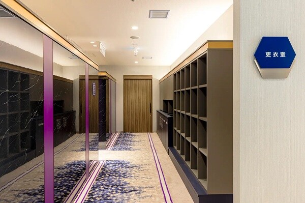 2つ目は、男女別フロア構成による安心感。更衣室・待合フロアでは、ホテルラウンジとも異なる“安心感と可視性”を重視。