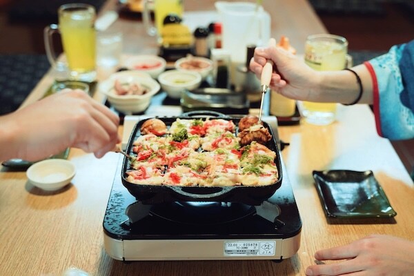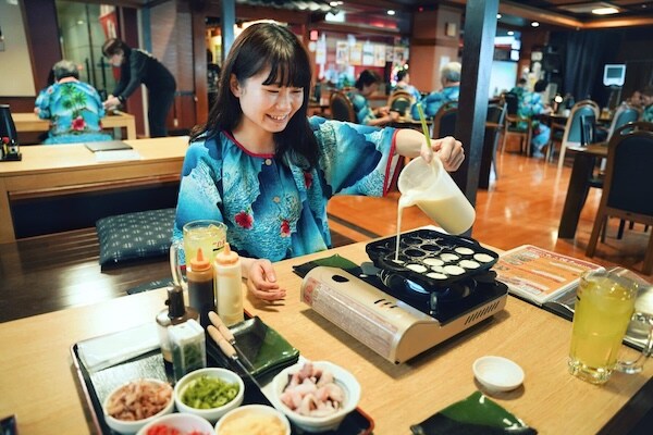 そして目の前には、自分で焼くたこ焼き。鉄板を囲みながら、誰がうまくひっくり返せるかワイワイ盛り上がる。ちょっと焦げたって、それもご愛嬌。湯〜トピアの名物は、たこ焼きそのものより、そうやって笑い合える時間なのかもしれない。