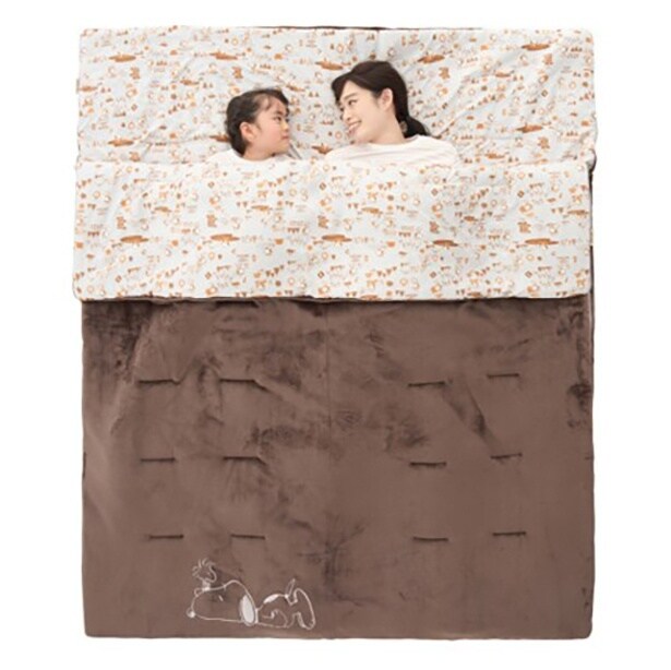 注目は、落ち着いたモカカラーの「SNOOPY やわらかあったかシュラフ・0」(1万2800円)。ふかふかで肌触りの心地よいフランネル生地と、スヌーピーの総柄デザイン生地を組み合わせたリバーシブル。中綿には軽量で保温性の高いダイナチューブファイバーを採用し、春先の冷え込む朝晩も暖かく眠ることができる。同じシュラフがふたつあれば連結することもでき、親子で添い寝できるのもうれしい。
