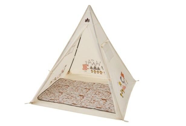 屋内でのキャンプごっこはもちろん、実際の野外キャンプやピクニック、ビーチでも便利な「SNOOPY KIDS テント」(1万1800円)は、子ども向けとは思えない本格的なつくり。屋内ではフレームの差し込み用ポケットがあるから床を傷つけず、野外ではペグを使って固定できる。