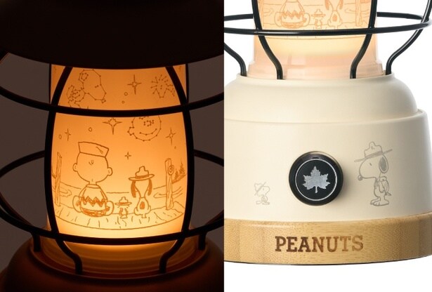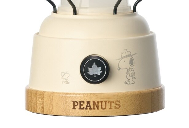 野外でのキャンプから、インテリアの演出用、さらには災害時への備えとしても頼りになるのが「SNOOPY パワーチャージLEDランタン-BF」(8800円)。光源部分にプリントされたスヌーピーやチャーリー・ブラウンの後ろ姿がかわいく、竹素材を取り入れたナチュラルな風合いも相まって、やさしく揺らぐ灯りにほっと癒やされる。