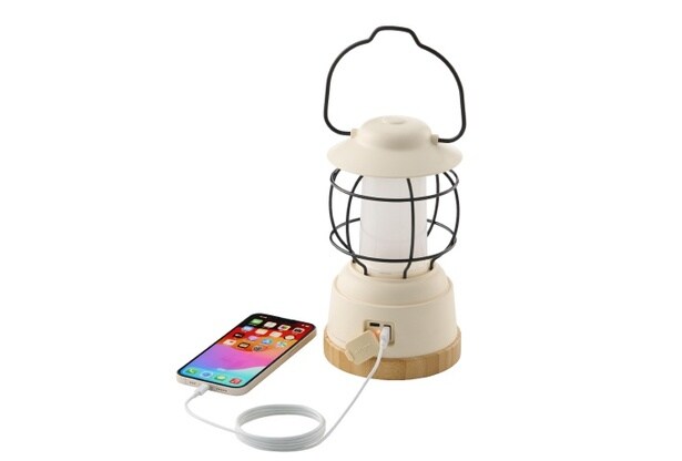 ライトは温もりを感じさせる暖色で、揺らぎモードのほか通常の点灯モードにも変えられる。LEDだからヤケドや引火の危険がなく、電源はUSBによる充電式で扱いも簡単。USBの出力ポートも付いているので、スマホを充電できるのも大助かり!