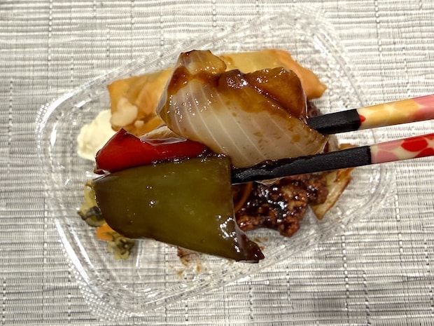 玉ねぎはシャキシャキ食感で、ピーマンのほんのりした苦味もアクセントに!濃厚なタレで少々こってり感もあるお弁当でしたが、野菜が口の中をリセットしてくれました♪
