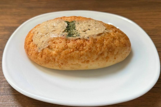 実際に食べてみると、パンはやや硬めの食感。生地にナチュラルチーズが使用されており、ほのかなチーズの味わいがいいアクセントになっています。