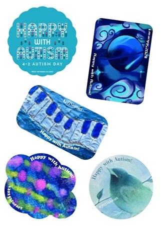 ステッカー賞の受賞作品は、イラストレーターの小石川ユキさんがデザインしたHappy with Autism公式ロゴマークと共にステッカーとしてデザインされ、東京都自閉症協会の啓発グッズとして頒布している。