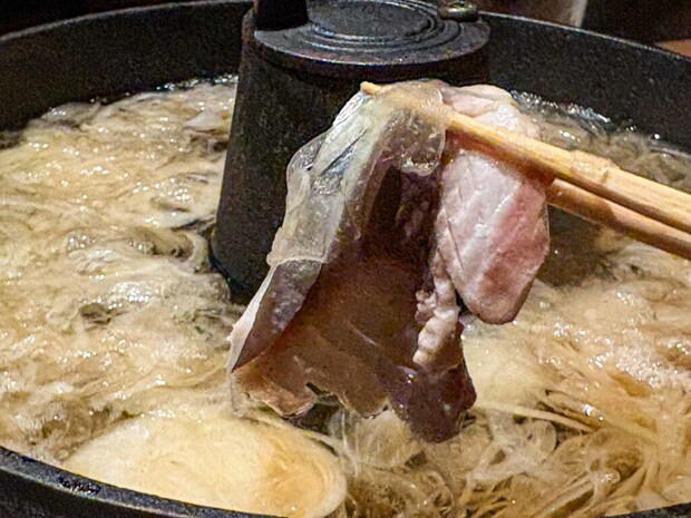 今回訪れたゆらくさんのさばしゃぶは、出汁と玉ネギが鍋に入っていて、しゃぶしゃぶしたサバと一緒に味わえるが特徴です。