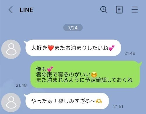 帰省して家族でお出かけしている最中にも、私が運転している後ろでLINEしていた履歴もあり。