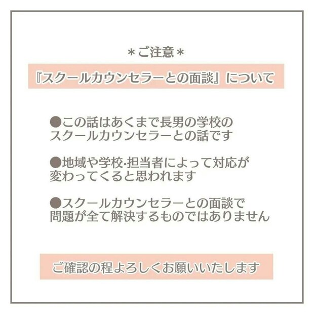 スクールカウンセラーとの面談が始まりました。スクールカウンセラーはこの件は、学校に任せてほしいと言い出します。イメージと違う対応に、ちょっと驚いてしまうヨカさんのなのでした。