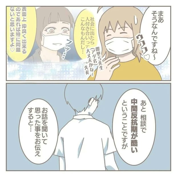 学校でのことは、任せても大丈夫そうです。これでヨカさんの悩みは一つ解決に向かいました。さらに、中間反抗期について、スクールカウンセラーはどんなアドバイスをするのでしょうか。