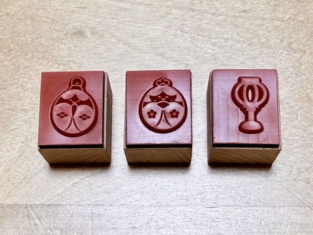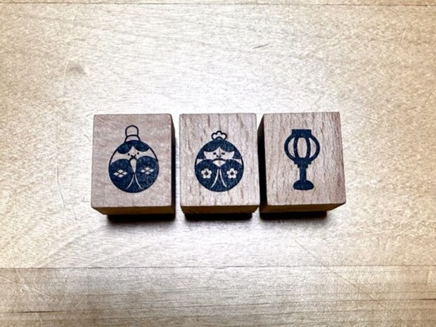 こちらは男雛と女雛、ぼんぼりのイラストが彫られたラバースタンプです。