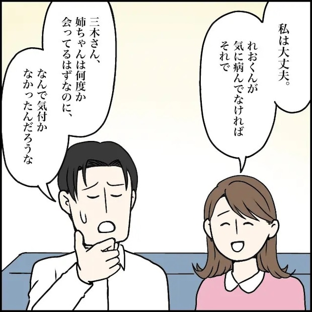 玲美さんの代わりに謝ってくれる太一に「私は大丈夫。れおくんが気に病んだなければそれで」と伝えました。太一は「三木さん、姉ちゃんは何度か会ってるはずなのに、なんで気付かなかったんだろうな」と玲美さんがなぜ勘違いしたのか理解できない様子でした。