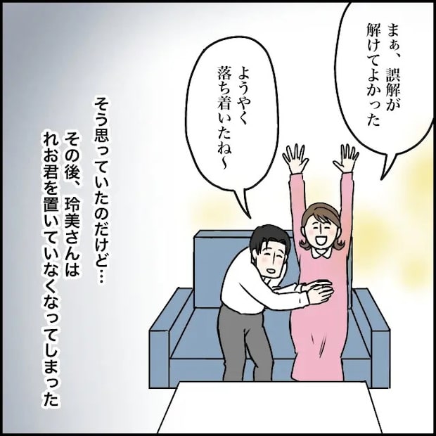 「まぁ、誤解が解けてよかった」「ようやく落ち着いたね~」私たちはようやく一件落着したことにホッとしていたのですが・・その後、玲美さんはれお君を置いていなくなってしまったのです。これまでも玲美さんの言動は理解できないことが多くありましたが、まさか自分の息子を置いて突然姿を消すなんて・・。玲美さんのことも気にはなりますが、父親とも離れて暮らしている中で母親までいなくなってしまったれお君が心配でなりません。