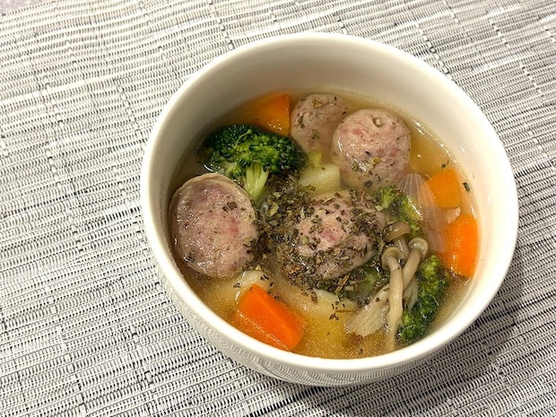 ソーセージの旨味が溶け出し、コクのあるスープに変化!かと言ってくどさはなく、野菜の甘味ともよく合ってバランスの良い仕上がりです!