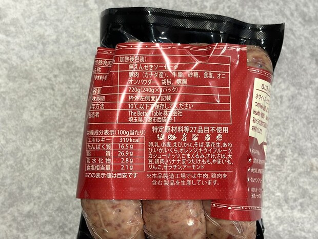 本品も輸入品のようなパッケージですが、日本の会社が製造しています。ソーセージは全部で9本入りで、価格は1,580円(税込)です。