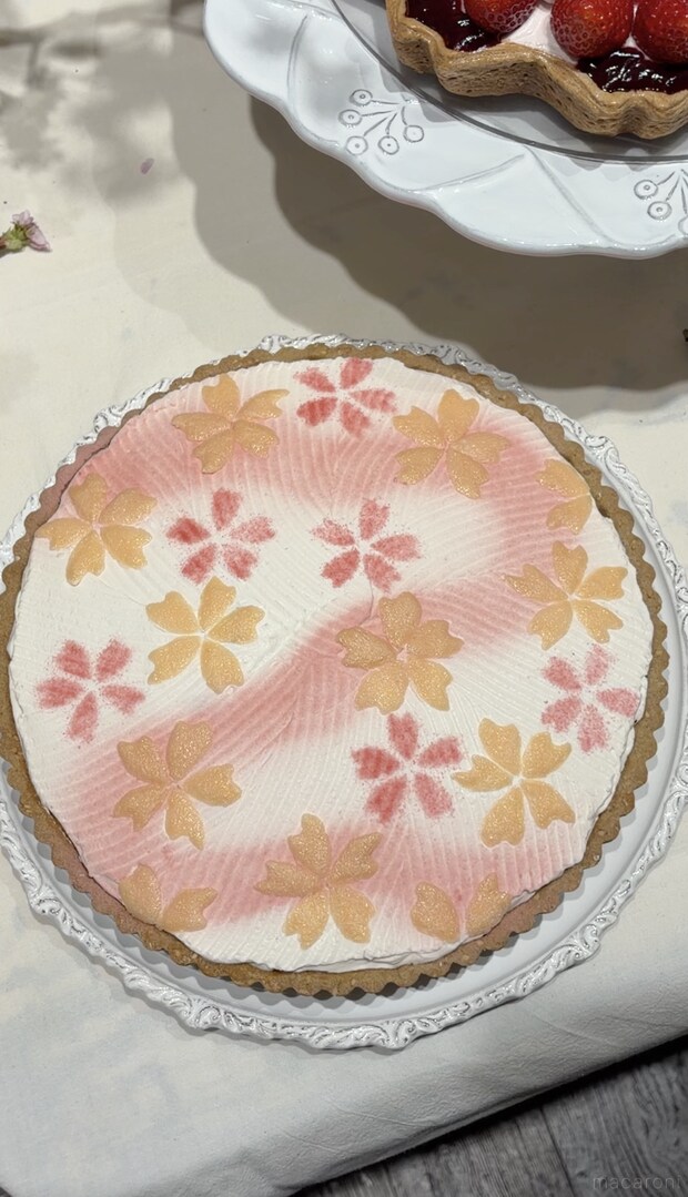 仕上げには、桜をイメージしたまろやかなクリームを合わせ、和素材と春らしさが調和した味わいを楽しめます。甘さと香ばしさのバランスがよく、落ち着いた印象のひと品です。