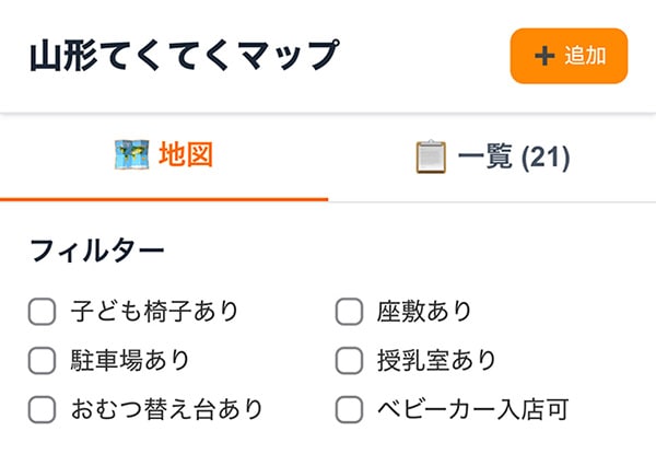 「山形てくてくマップ」の「てくてく」は、小さな子どもが歩く様子を表す擬態語である。子育て中の親子が気軽に外出できるように、市内を「てくてく」と歩きながら子連れにやさしいお店を見つけてほしいという願いを込めたサービス名だ。