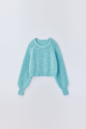 ファンシーヤーンクロップドトップス(Turquoise Blue)