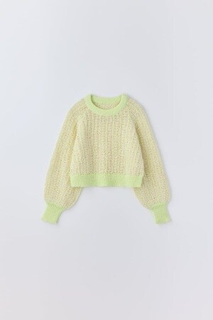 ファンシーヤーンクロップドトップス(Lime Beige)。