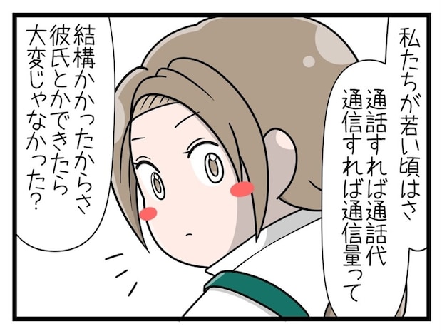 パート先の仕事仲間と、自分の若いころの話題で盛り上がる母親。「パケ死」「テレビ電話」と懐かしい言葉を並べて時代の流れを感じていました。そんな彼女の娘は、今はネットゲームに夢中で、顔も知らない相手とメッセージのやり取りをしています…。