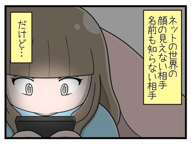 この作品は、作者・さやけんさんが実話をもとに、SNS利用の怖さを親子がどのように経験し、どのように向き合っていったかを描いた物語です。中学生の末娘めいさんは、オンラインゲームで知り合った顔も知らない相手と仲良くなり、次第に好意を抱くようになりました。しかし、その相手の目的はめいさんの個人情報を入手し、脅すことだったといいます。「ネット中にバラす」と言われためいさんは、はじめてネットの怖さを実感し、母親や兄姉に助けを求めて解決へと向かいます。