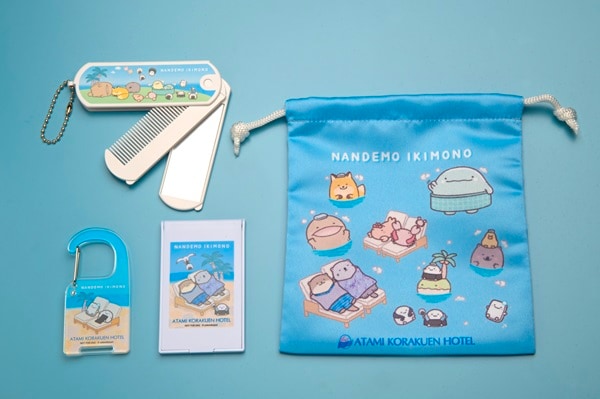 また、オリジナルのノベルティ(コンパクトミラー、コームキーホルダー、アクリルカラビナ、巾着)が、宿泊者1人につき1セットプレゼントされる。ただし、3歳以下の子どもにはノベルティのプレゼントは付かない。