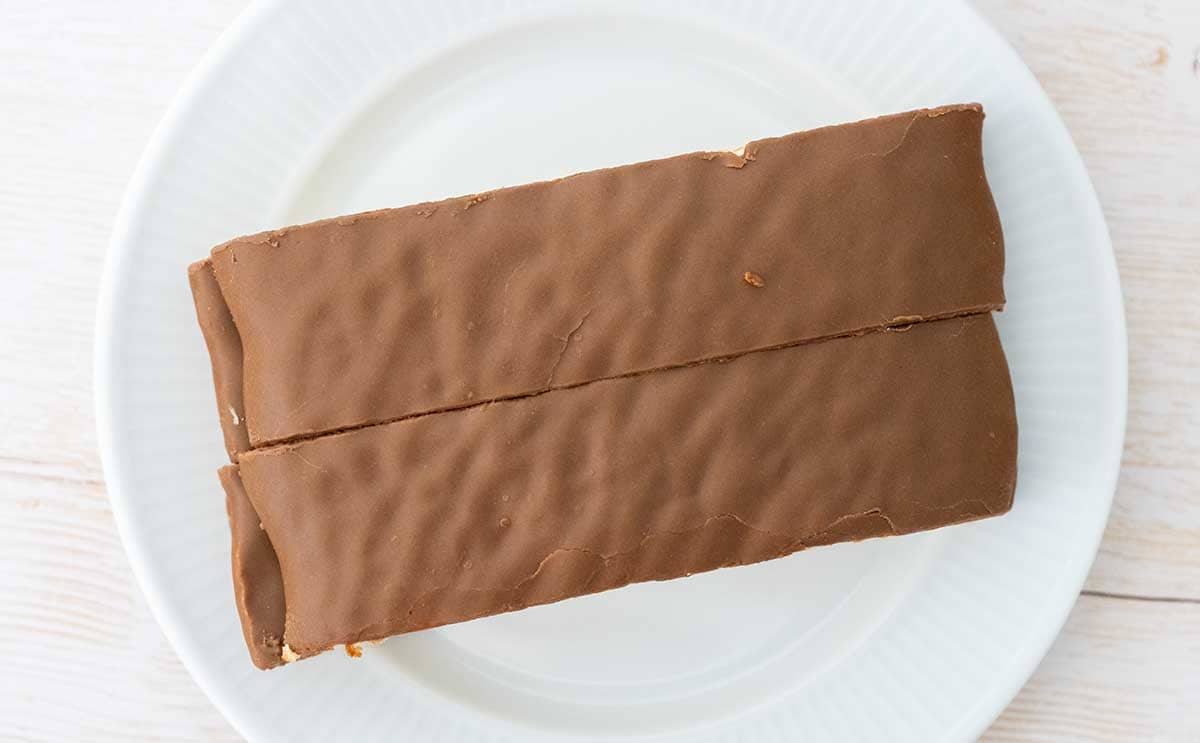 1包装当たりの熱量は350kcal、たんぱく質3.3g、脂質18.7g、炭水化物42.2g(糖質41.9g、食物繊維0.3g)、食塩相当量0.2g。ややカロリーは高めかもしれませんが、1本だけなら175kcalなので、2日にわけて食べればそんなにカロリーは気にならないはず。