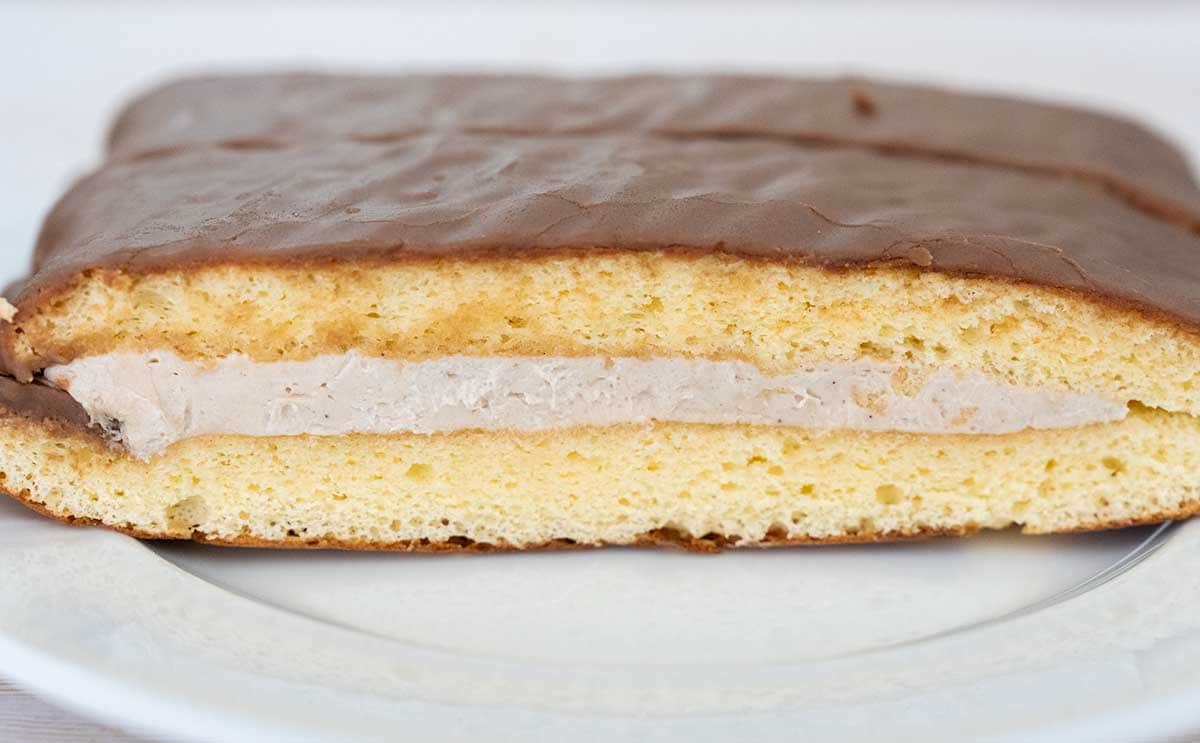 スポンジ生地の表面は、コーヒーチョコでコーティングされていますね。