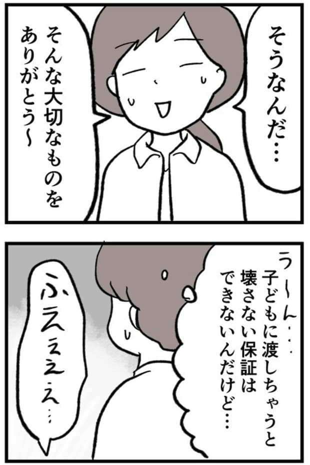 プレゼントのネックレスが友人にとって大切な品だと知ったまゆさん。けれど「大切にしてね」と言われても、子どもに渡せば壊してしまいそうで、素直に喜べず複雑な気持ちになりました。