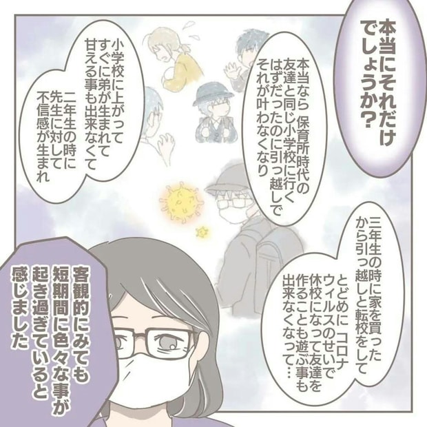 この作品は作者であるヨカさんとその家族に起きた、コロナ禍前後のエピソードです。コロナ禍の時期、第2子の出産を経て引っ越しをするところだったというヨカさん一家。夫は転職の後にオンラインセミナーに夢中になり、家族との時間が減ってしまいます。また、長男は学校で友だち付き合いがうまくできずにいました。