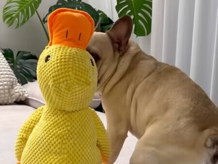 飼い主さんがアヒルちゃんを取ってあげると、